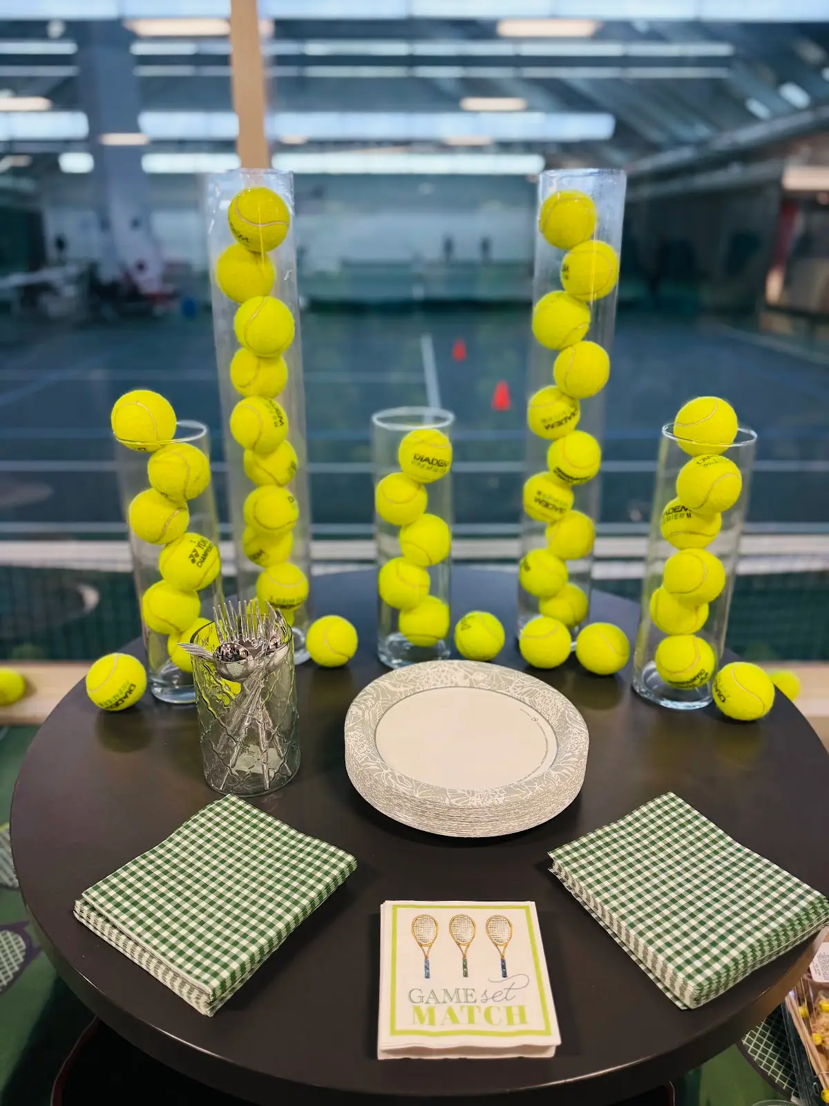 Transformed indoor tennis facility into a chic court-side dining experience